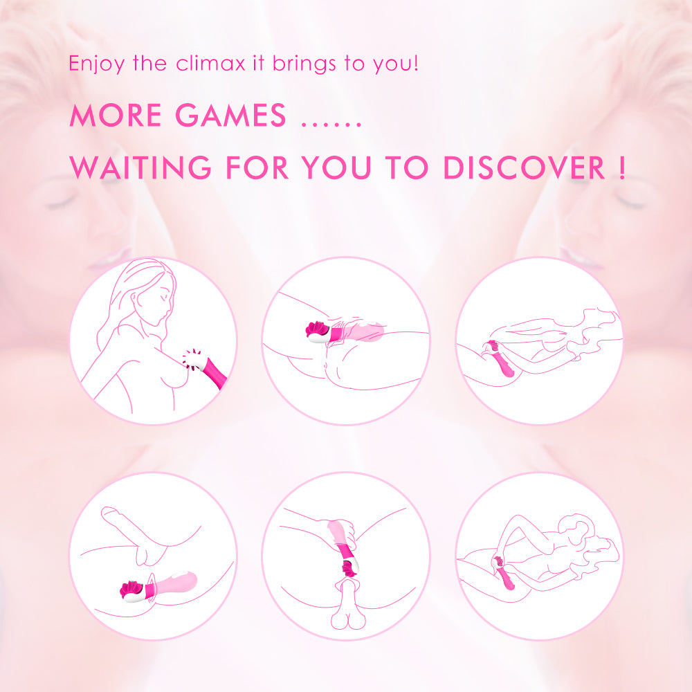 I toppen sitter ett hjul format med 10 mjuka silikon-tungor som rör sig rytmiskt mot klitoris. Välj mellan 9 olika program och hastigheter – från lekfullt retande till intensiv stimulans – och låt dig slickas till orgasm, precis när du vill.
