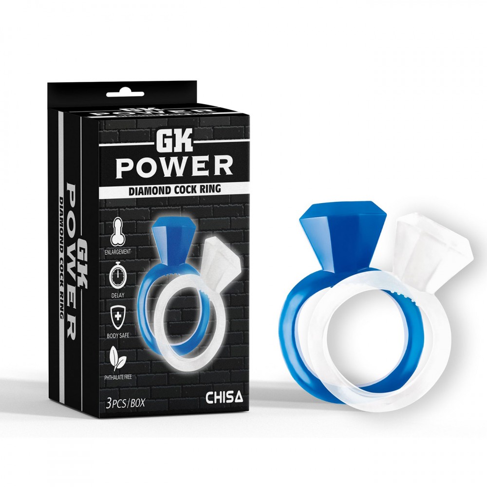 - 3-pack penisringar med diamant-formad överdel (1 st blå, 2 st clear)