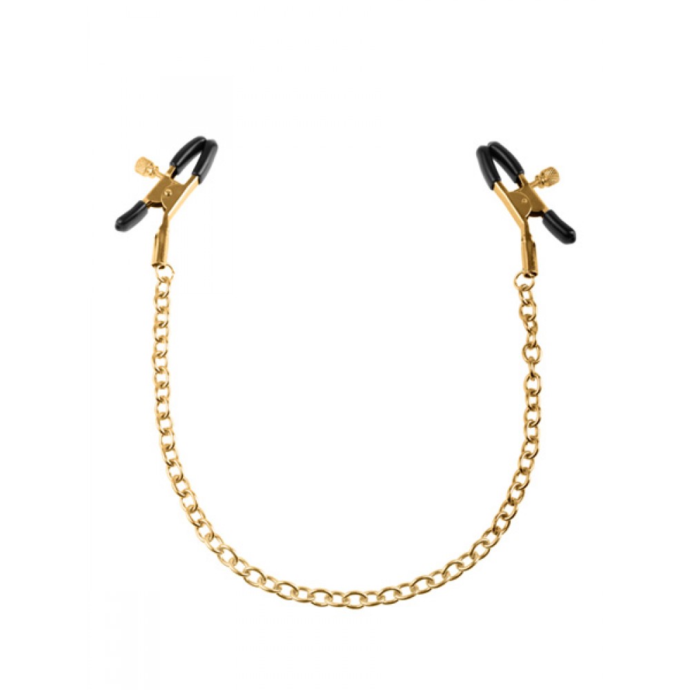 Gör dina bröstvårtor styva av glädje med dessa eleganta Nipple Clamps. Tillverkad av slitstarka metallklämmor och täckta av mjuka gummifoder för exceptionell komfort. Dessa klämmor är perfekt både för nybörjare och för fetisch entusiaster. Justerbart tryck med hjälp av skruven på klämman. Bär dessa och varje rörese du gör får kedjan att svänga och stimulerar varsamt dina bröstvårtor!