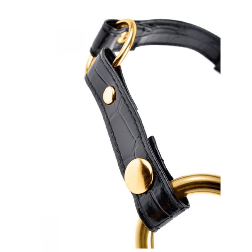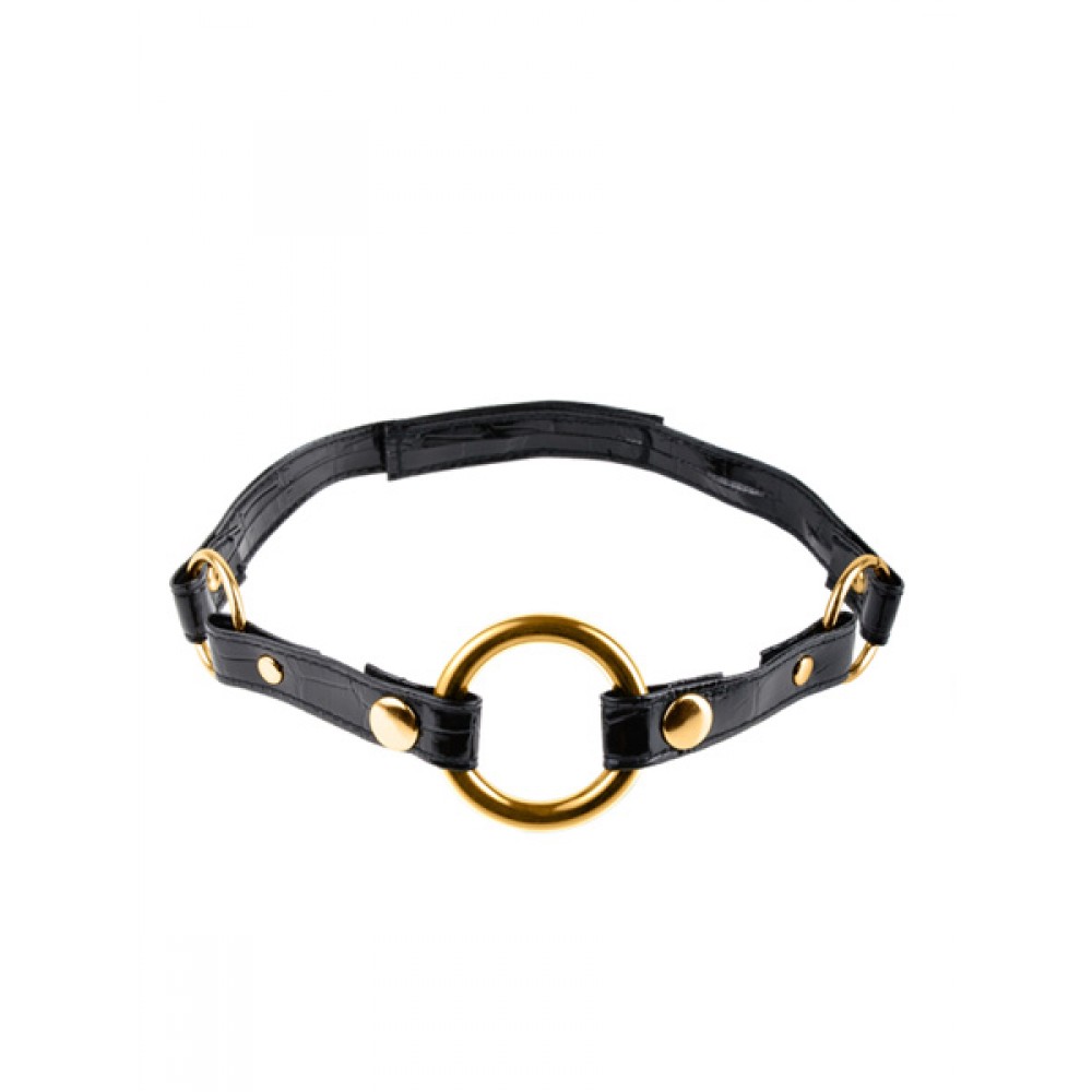 Denna gag består av en förgylld stålring som hindrar munnen från att stängas och som lämnar munnen vidöppen för många spännande lekar!