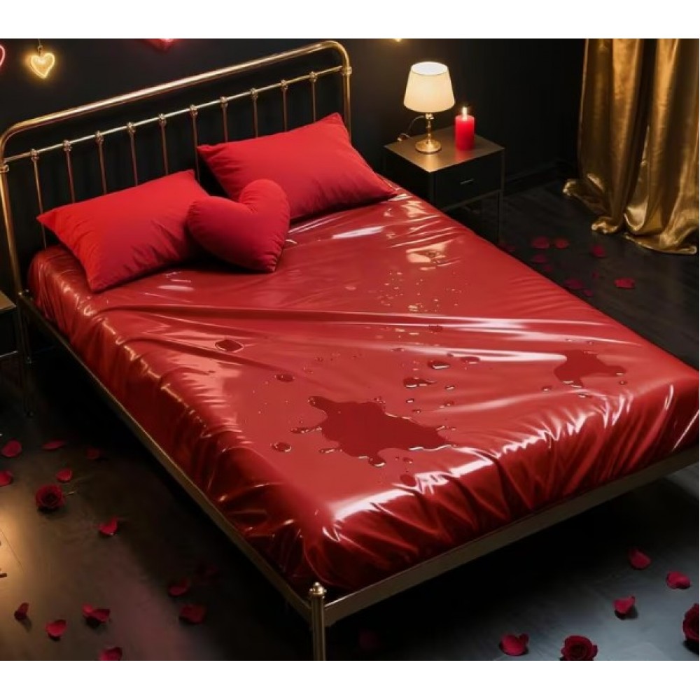 Glöm trista gamla lakan – klä sängen i ett rött, inbjudande vinyllakan som är gjort för kladdiga, våta och riktigt spännande lekar. Här kan ni smeka, massera och hälla på utan att behöva oroa er för att materialet säger ifrån.