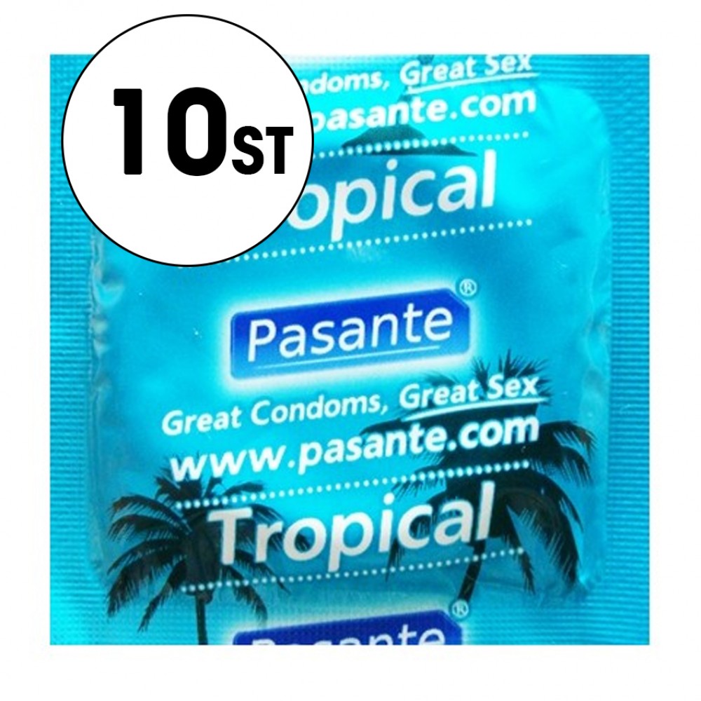 Taggar: pasante kondomer, tropical kondomer, kondomer med smak, fruktiga kondomer, doftkondomer, kondomer med glid, kondomer 10-pack, mango kondom, kokos kondom, ananas kondom, pasante tropical