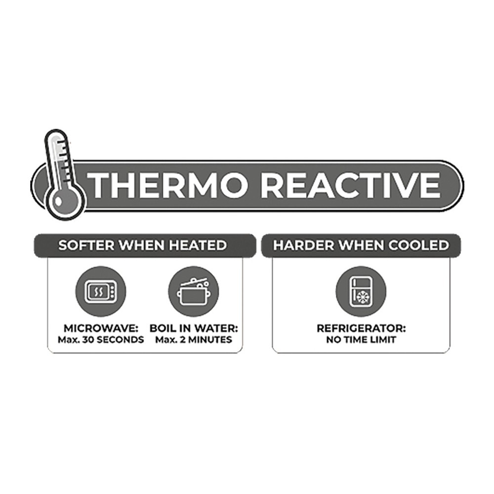 - Termo-reaktiv: värm för mjukhet, kyl för fasthet