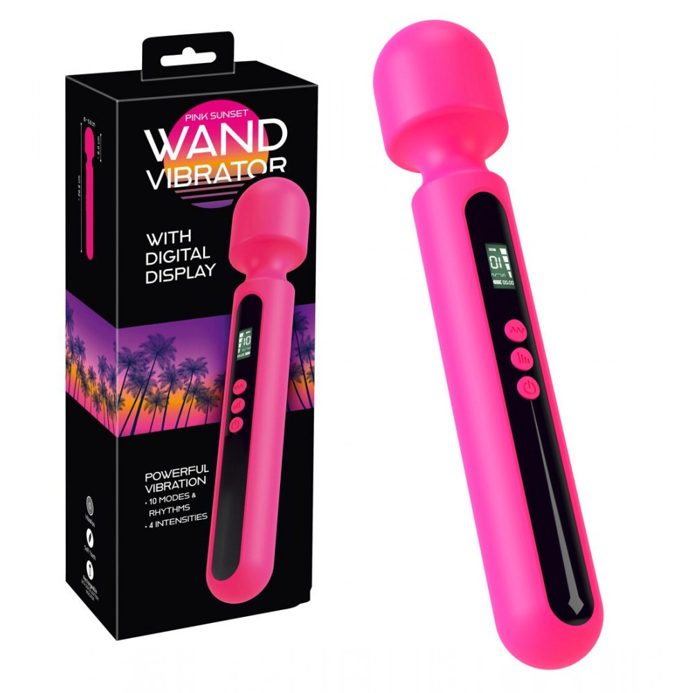 Digital kontroll, silkeslen känsla och en wand som verkligen levererar – säg hej till Pink Sunset Wand Vibrator!