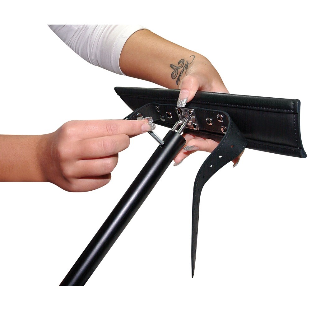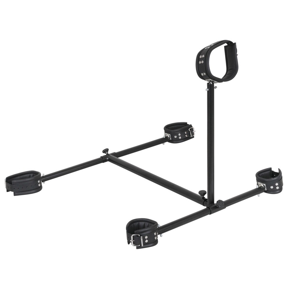 Lätt att montera: Fäst bara de mjukt polstrade bojorna till hals, händer och fötter till det justerbara metallstativet. Alla bojorna har spännen. Sen justerar du bredd och längd enligt önskemål - klart!
